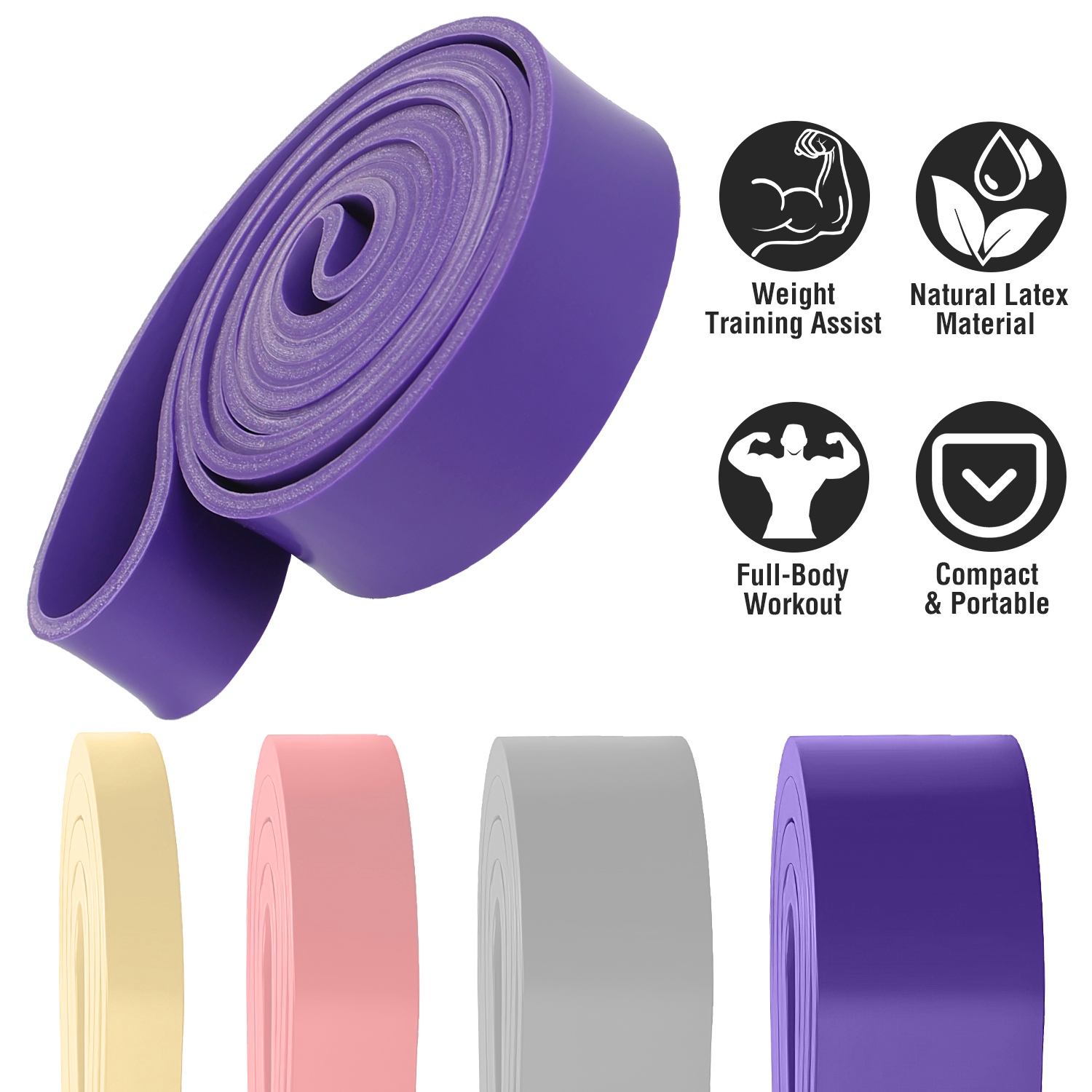 Our pull up assistance bands offer effective training. Workout your arms, back, legs and butt all at once with this mobility band, perfect for body resistance training and physical therapy to help strengthen torn ligaments or muscles. 4 Different bands are perfect for learning pull ups, Pilates, Mobility, Powerlifting, Chin ups, Yoga, Stretching, Gymnastics, physical therapy, push-ups, barbell and dumbbell assist etc.. Small, light and flexible, they can be tucked away anywhere. Just enjoy an effective full-body workout anytime you want with this resistance band!